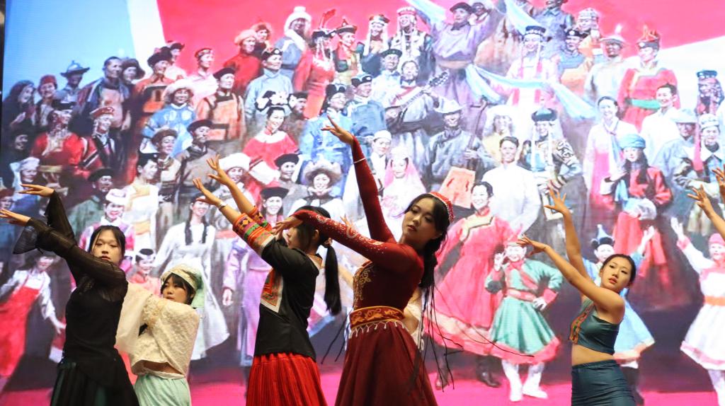 本次活动由22级人工智能1班周宝田和肖京主持,他们从习近平总书记关于民族工作的重要思想——四个与共和五个认同话题引入,邀请大家共同欣赏公司员工们带来的歌曲《紫荆花盛开》、舞蹈《美丽中国》和话剧《民族团结一家亲》,少数民族同学们共同录制的视频更是丰富了主题团日活动的内容。