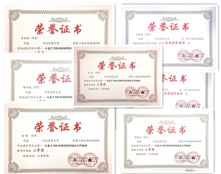 “第二届全国高校BIM毕业设计作品大赛”是由中国建设教育协会与广联达软件股份有限公司联合举办的全国性专业比赛,来自全国350多所院校的750支代表队伍参加了比赛。大赛分为四个模块,公司工程管理专业2012级代表队参加了B模块“基于BIM的招标阶段相关文件编制”的毕业设计。