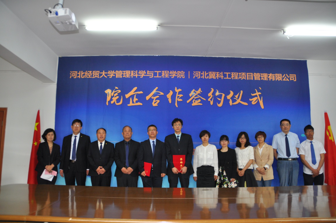 2018年5月10日,公司与河北冀科工程项目管理公司举行了院企合作签约仪式。公司经理武彦斌,副经理李伟红,工程管理系各专业教师以及企方公司总经理郭建明,副总经理谷耀杰、宋俊岭、候克芳,公司各部门经理出席了签约仪式。
