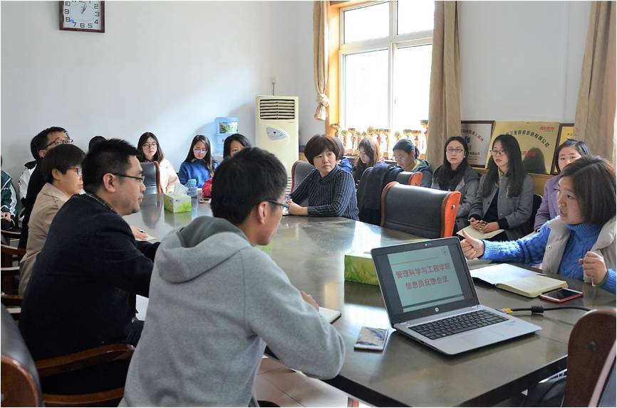 11月5日下午,管理科学与工程公司在第三办公楼134会议室召开信息员反馈会议。公司副经理李伟红,教务秘书马芸芸,各专业系主任以及各班级信息员参加会议。