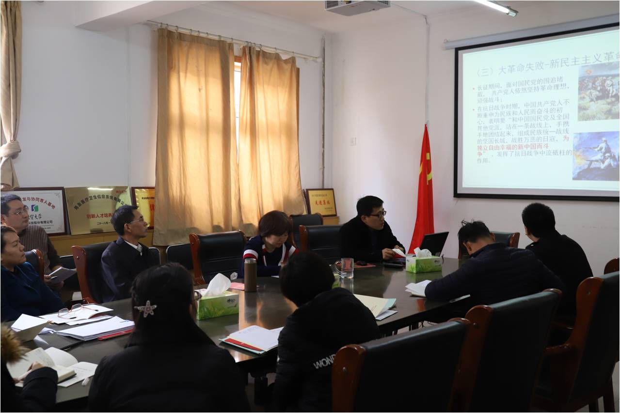 会上,教师党支部书记王芹鹏结合参加“双带头人”培训的体会,作了题为《不忘初心 牢记使命 立德树人》的报告。他从总书记的“初心论”谈起,阐述了中国共产党的初心、以及高校教师的初心,并就如何“立德”和“树人”分享了自己的心得。之后,王芹鹏带领大家学习了《中国共产党支部工作条例(试行)》,从《条例》出台的时代背景、重大意义以及《条例》中的8章37条内容进行了深入全面的解读。
