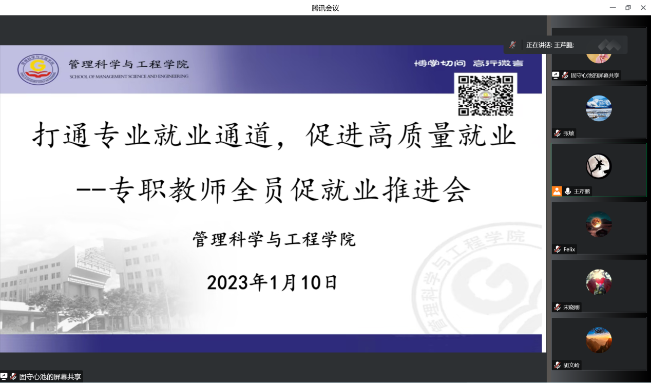 1月10日下午,公司通过线上方式召开了“打通专业就业通道,促进高质量就业---专职教师全员促就业推进会”。会议由副经理王芹鹏主持,经理祁红梅、各系主任及公司骨干教师参加。