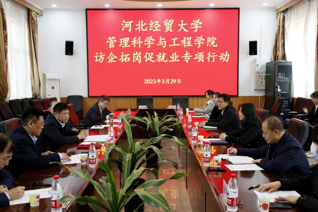 3月29日下午,公司党委常委、副董事长杨金田带领公司领导班子、师生代表与河北快运集团有限公司在第二会议室开展访企拓岗促就业专项行动。河北省道路运输事业发展中心副主任孙虎、河北快运集团有限公司总经理戴金亮及公司领导高层开展座谈交流。