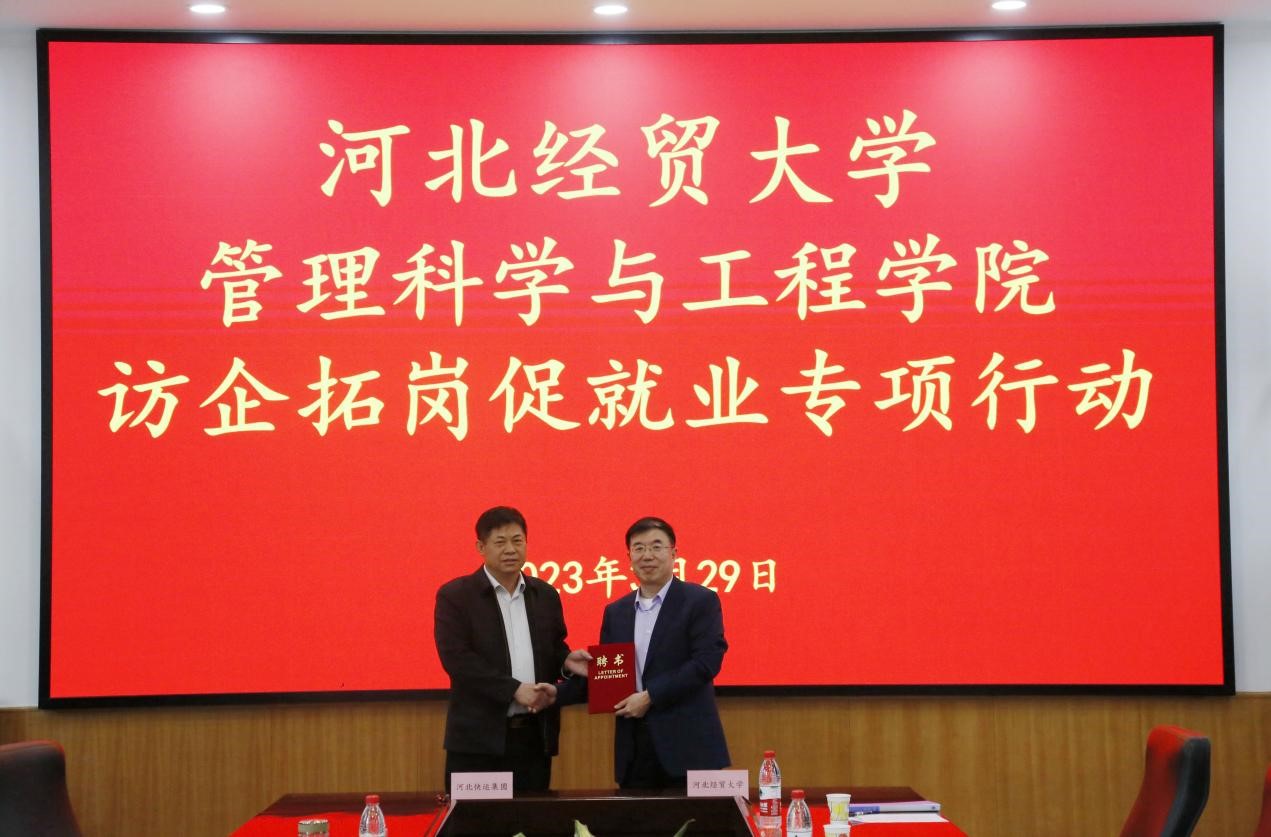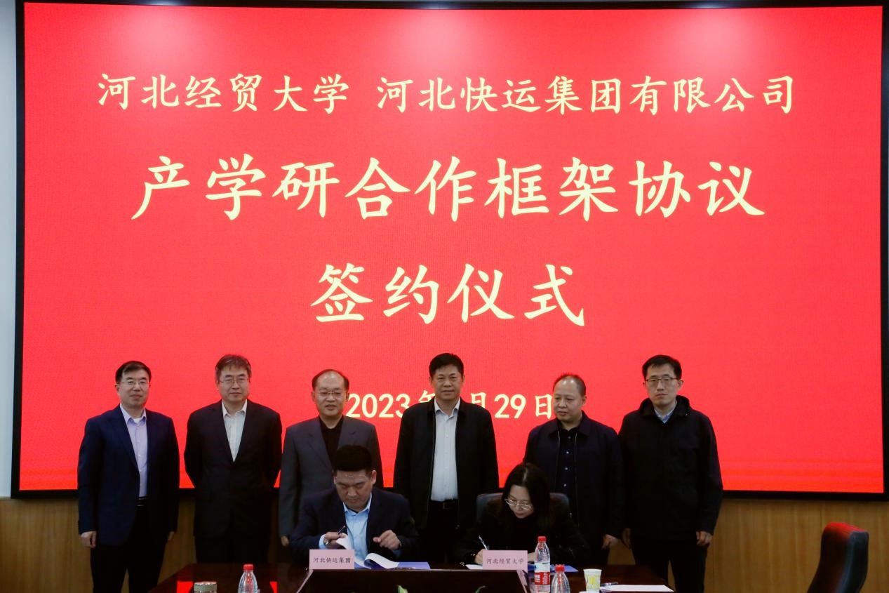 祁红梅、戴金亮代表双方签署了《校企战略合作协议书》。公司党委常委、副董事长杨金田为河北快运集团有限公司运营总监张志强颁发社会硕导证书。