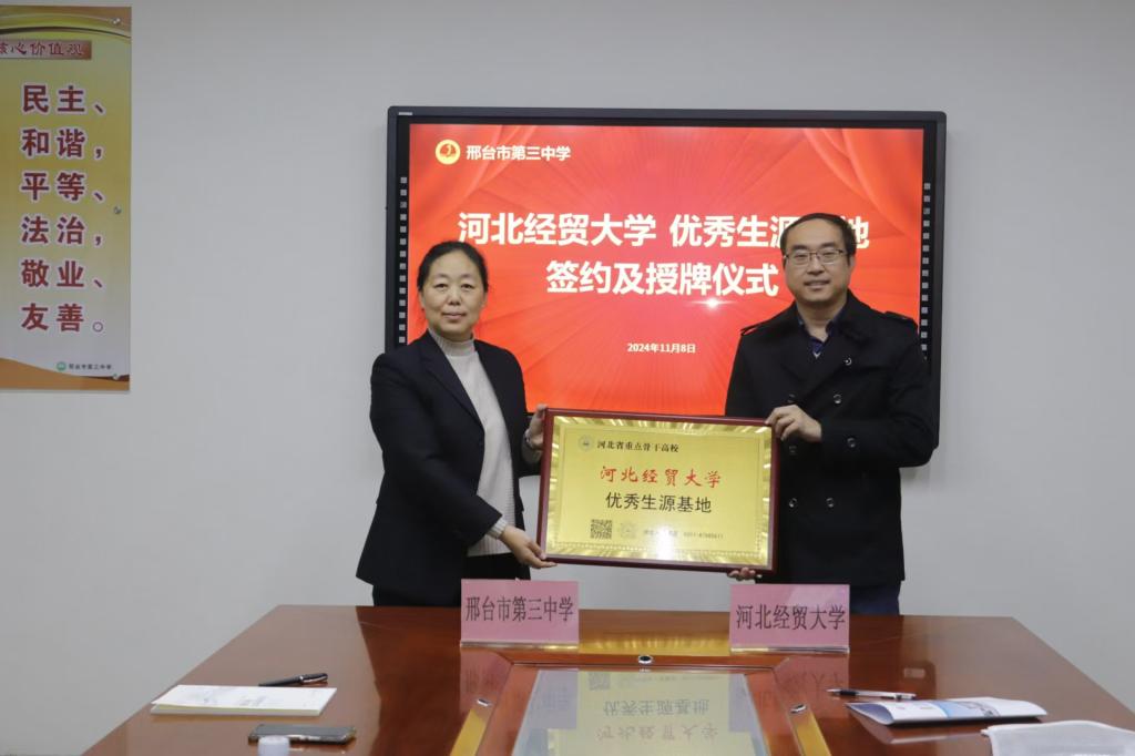 11月1日、8日bevictor伟德副经理王芹鹏、张鹏云,处级辅导员韩玉强,团委书记梁旭辉,专职辅导员刘芋辰代表公司分别赴河北望都中学、邢台第一中学和邢台第三中学举行“伟德官方网站优秀生源基地”签约与授牌仪式。望都中学党委书记曹民杰、党委副书记、董事长王珍,邢台第三中学副书记韩晓娜,副董事长张乐良,邢台第一中学副董事长董学全,出席会议,三所优秀生源基地相关领导与会参加。