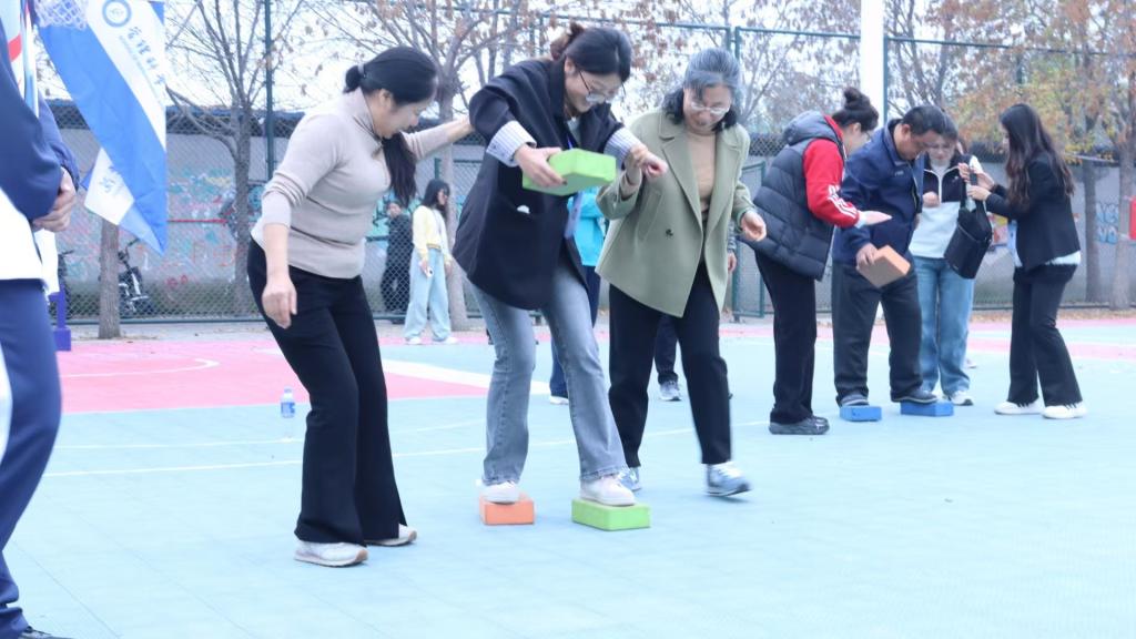 运动会设“摸石过河”“掷壶”“背夹球”和“众星捧月”四个集体项目。每个项目既考验队员身体的灵活性和协调性,又能体现团队的协作精神。参赛老师随机分组接续进行,在简单的热身活动后,老师们全身心投入比赛,精准的投掷、默契的传接,赛场上展现出良好的团队协作能力和拼搏精神,老师们充分放松自我,享受体育运动带来的乐趣,运动场上气氛热烈,充满了欢声笑语。