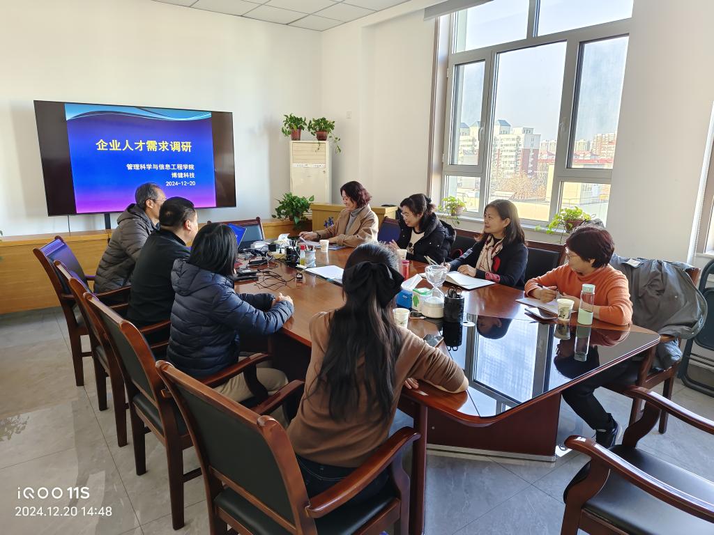 12 月 20 日下午,bevictor伟德计算机通识课教学团队在徐国章和张静妙两位教研室主任带领下,前往河北博健科技有限公司开展人才需求调研,公司副总经理贾铁拴及产品主管张文华等热情接待,会议于公司会议室举行,由贾总主持,部分骨干教师参会。