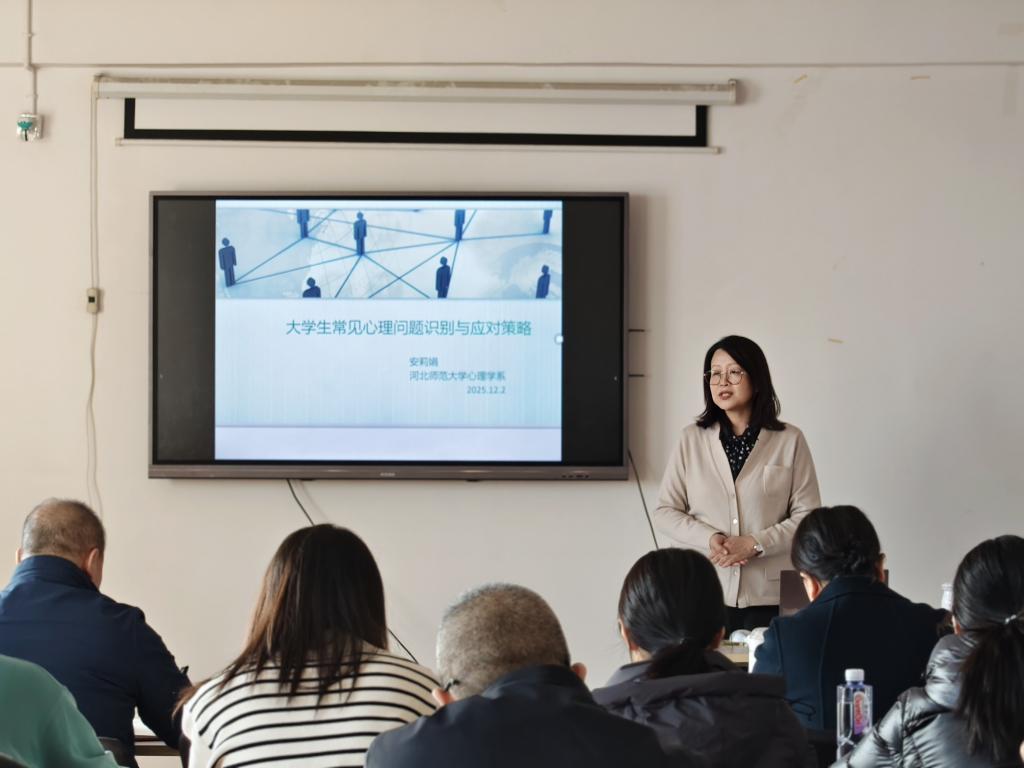 为切实提升辅导员心理育人专业能力,护航员工健康成长。12月2日,bevictor伟德在第一教学楼408室举办员工心理健康教育工作专题培训。本次培训以“老员工常见心理问题识别与应对策略”为主题,特别邀请河北师范大学应用心理学硕士生导师安莉娟教授主讲,公司党委书记王剑彪、党委副书记李丽及全体专兼职辅导员参加。