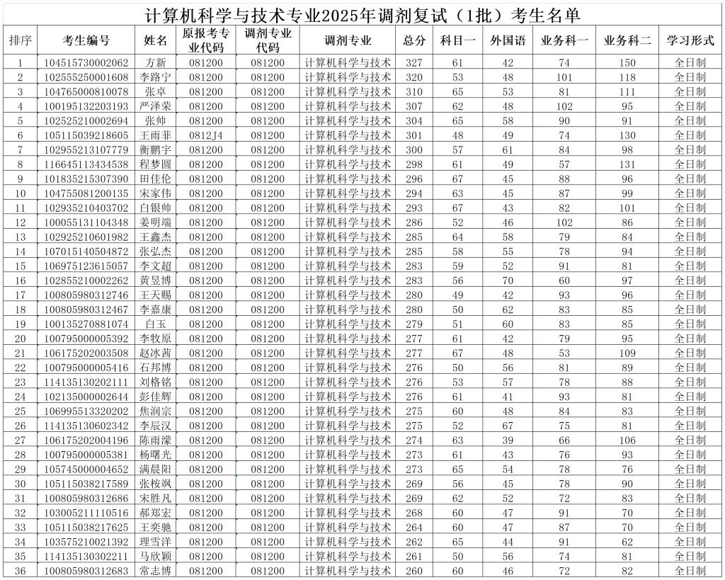计算机科学与技术专业2025年调剂复试(1批)考生名单