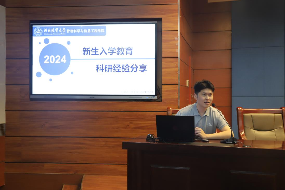 优秀在校生代表张玉潭分享了科研的宝贵经验,鼓励新同学们保持积极乐观的心态,享受科研的过程。