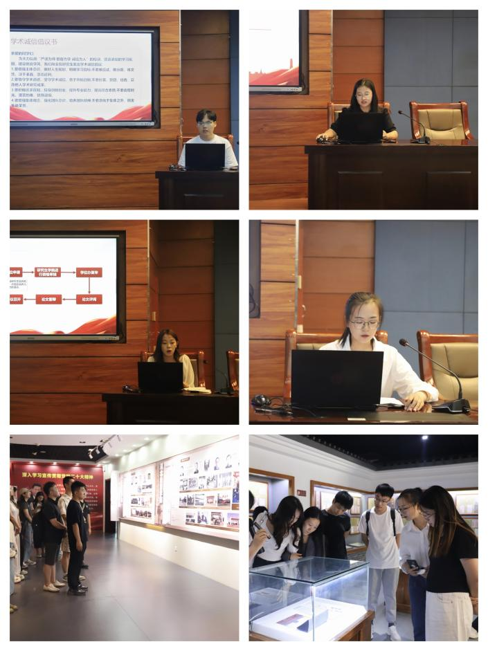 辅导员曹洋、魏然、李格珲就研究生日常管理与服务工作进行了说明。院研会同学带领新生学习研究生相关制度和政策文件,并开展朋辈交流活动。会后,院研会组织新生们参观了校史馆和发票博物馆。