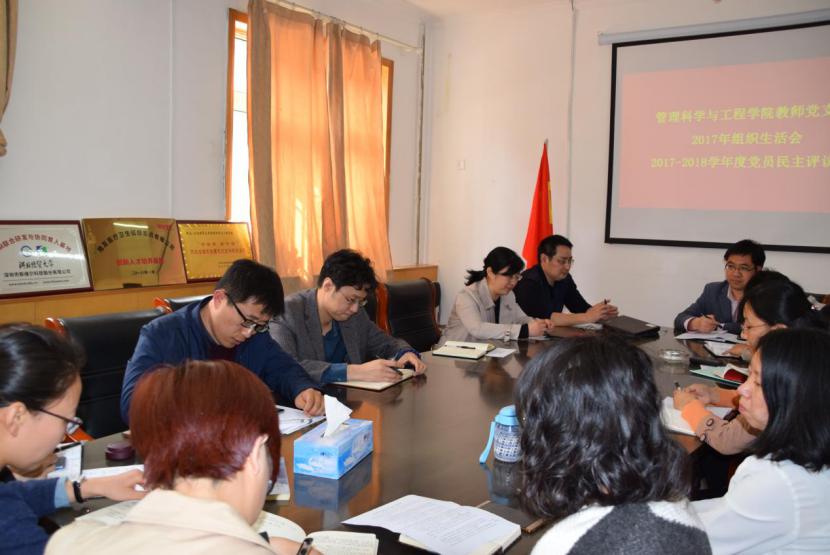 近日,管理科学与工程公司教师党支部在管科公司会议室召开了2017年度党支部组织生活会。会议由党支部书记王芹鹏同志主持,全体党员参加。