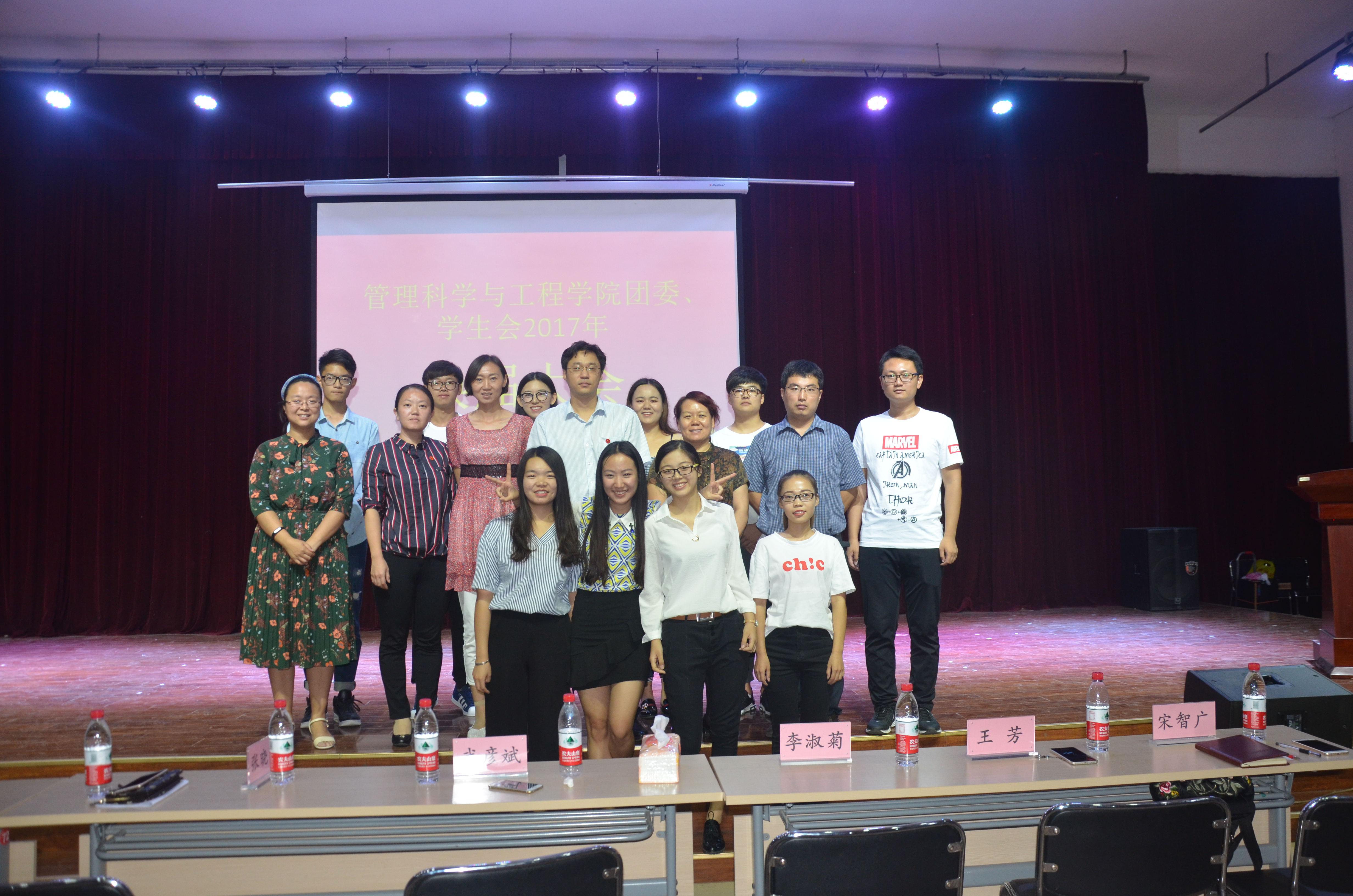 9月25日,管理科学与工程公司在老员工活动中心3号厅召开2017年团委员工会换届大会。公司经理武彦斌、党委副书记张晓军、党务秘书刘益星、教务秘书孟祥燕、团委书记宋智广以及全体辅导员老师出席此次大会。第四届和第五届院团委员工会全体成员参加会议。