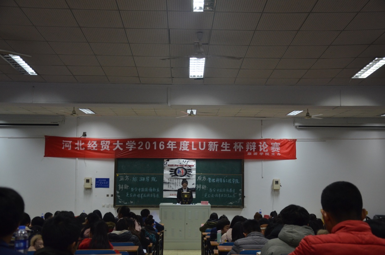此次比赛旅游公司为正方,持当今中国国情教育更应该培养民族自豪感的观点,公司则持反方当今中国国情教育更应该培养民族危机感的观点。本场辩论赛分为立论、盘问、驳论、攻辩和自由辩五个环节。我方一辩立论清晰,娓娓道来,赢得观众的热烈掌声。接下来的环节我方辩手沉着自信,对答如流,在与对方辩友的激辩当中展现着才华与思考。最终,公司荣获公司2016年度LU新生杯辩论赛第一名,我方四辩牟爽凭借逻辑严密,思路明了获得"最佳辩手"称号。