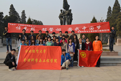 2014年3月16日,管理科学与工程公司12级物流管理2班举办以“回顾过去,展望未来,共筑中国梦”为主题的班级团日活动,通过在华北军区革命烈士陵园进行扫墓,全班认真体会着本次团日活动带来的意义。