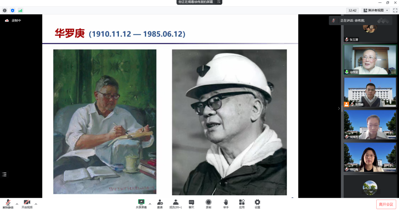 首先,徐老介绍了管理科学在中国的发展历程,阐述了前辈们在推动我国管理科学发展方面做出的不懈努力与重要贡献。然后,徐老回顾了自己员工时代跟随华罗庚教授在全国推广统筹法、优选法的经历,并向大家展示了华罗庚教授如何用通俗易懂的方式向人们讲解统筹法、优选法等管理科学方法。接着,徐老剖析了近年来大陆学者在管理科学理论与应用方面的研究成果及典型案例。最后,徐老鼓励师生们,要保持前瞻视角,结合时代发展,在管理科学的学习和研究方面不断努力、钻研,健康学习,快乐工作。徐老富有激情且生动有趣的讲述深深感染了与会师生,受到师生们的高度好评,纷纷表示受益匪浅。