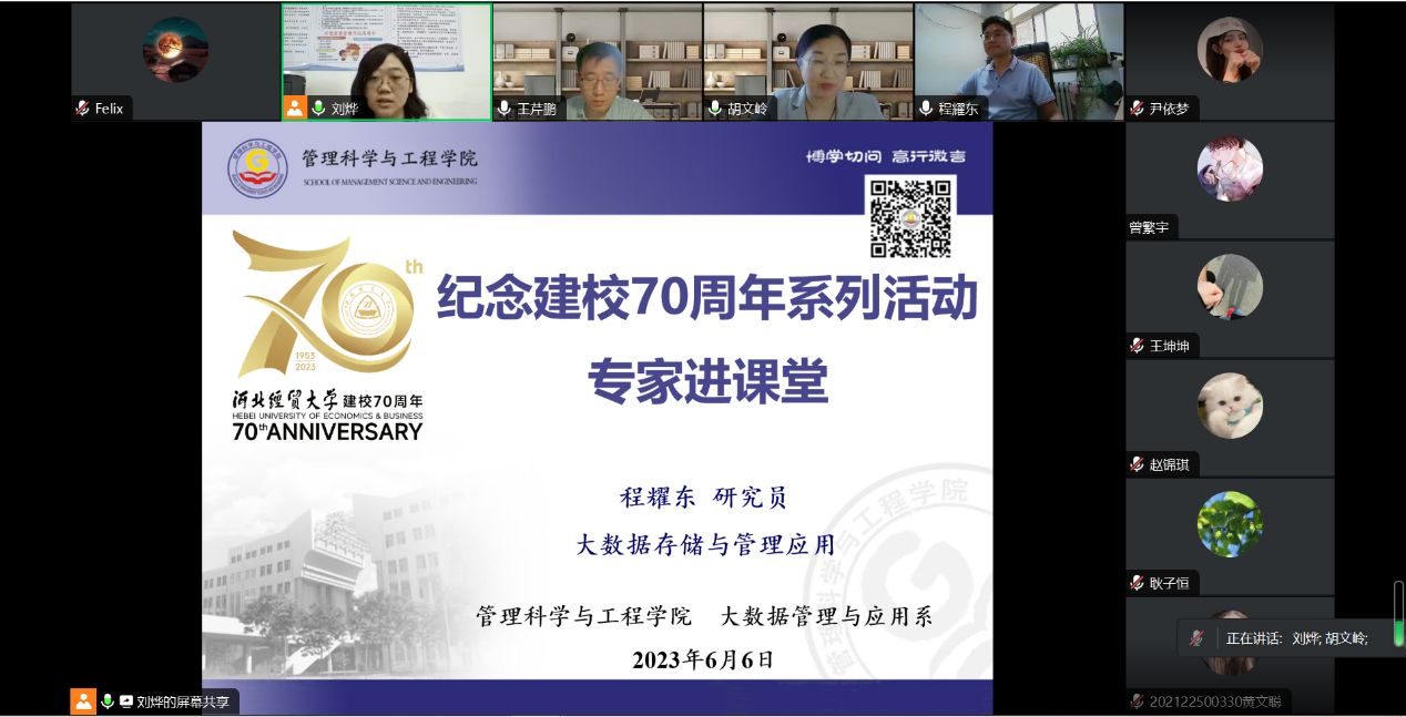 为帮助公司师生了解大数据存储与管理技术的应用,6月6日上午,公司邀请中国科公司高能物理研究所计算中心副主任程耀东研究员作题为“高能物理科学大数据存储与管理”的学术讲座。此次讲座由公司副经理王芹鹏主持,公司骨干教师、20级信息管理与信息系统专业、21级大数据管理与应用专业本科生及部分研究生参加。