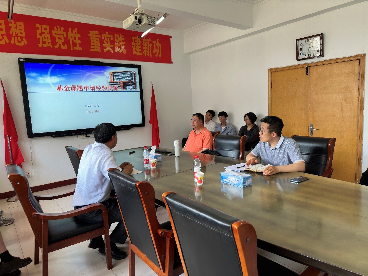 为提高国社科申报水平,4月25日,公司邀请北京科技大学王道平教授做国家课题申报指导与经验交流。会议由经理孙立辉主持,副经理王芹鹏以及公司青年教师20余人参加。