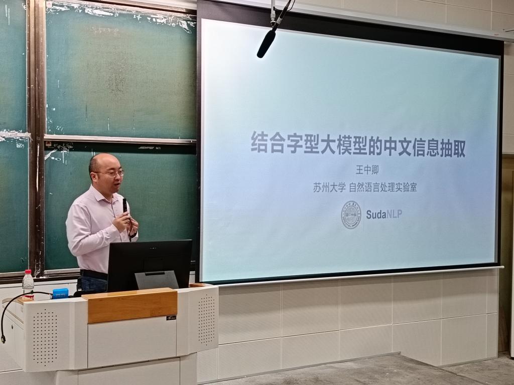 王中卿作了题为《结合字型大模型的中文信息抽取》的报告,介绍了中文信息处理发展的历史,讲解了构成字形图的相关工作,从多个关键角度对结合字型信息和大模型的中文信息抽取最新研究进展进行了剖析。最后,王中卿强调需要探索更多、更好的将汉语特点融入到大模型中的方式。
